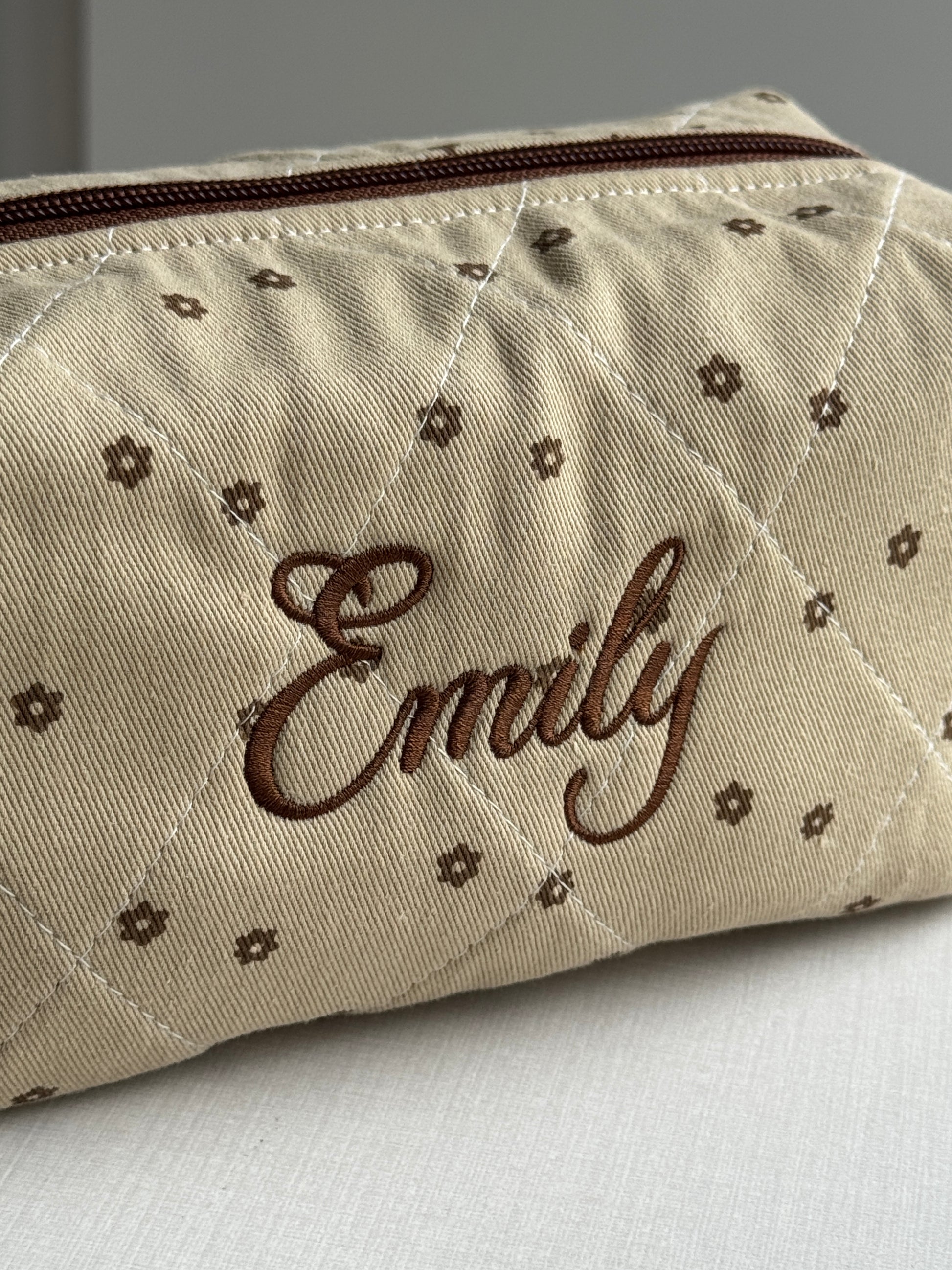 *The thread color used for the name embroidery in the listing photos is brown.