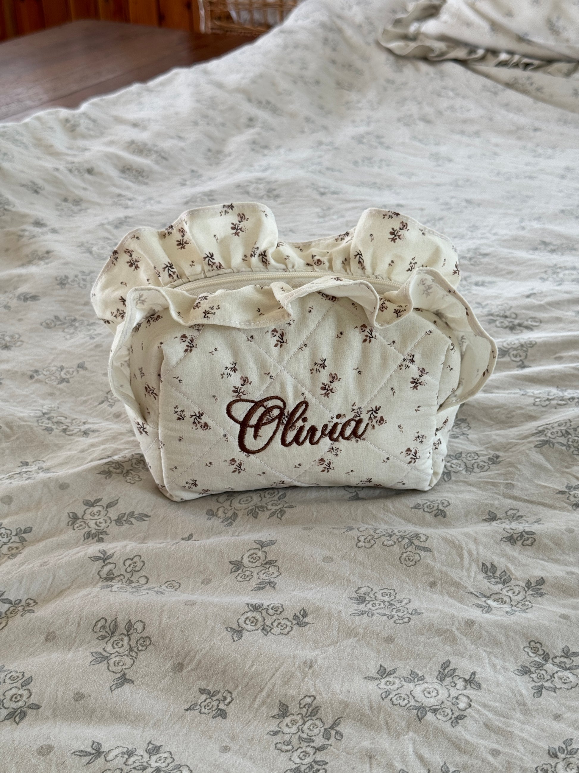 *The thread color used for the name embroidery in the listing photos is brown.