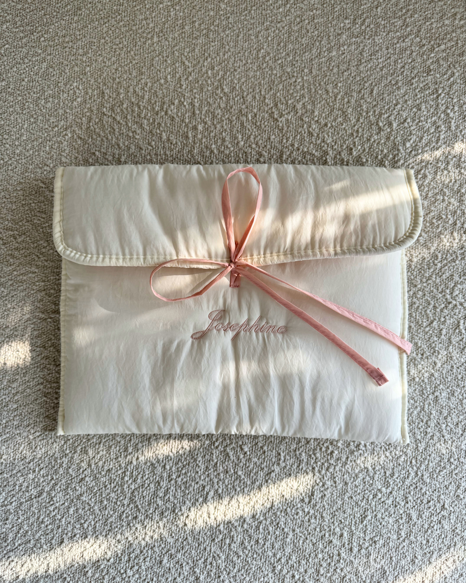 - Spot clean gently with a damp cloth and mild soap, or carefully hand wash with cold water if needed. Avoid machine washing or wringing to preserve the embroidery, fabric, and shape.